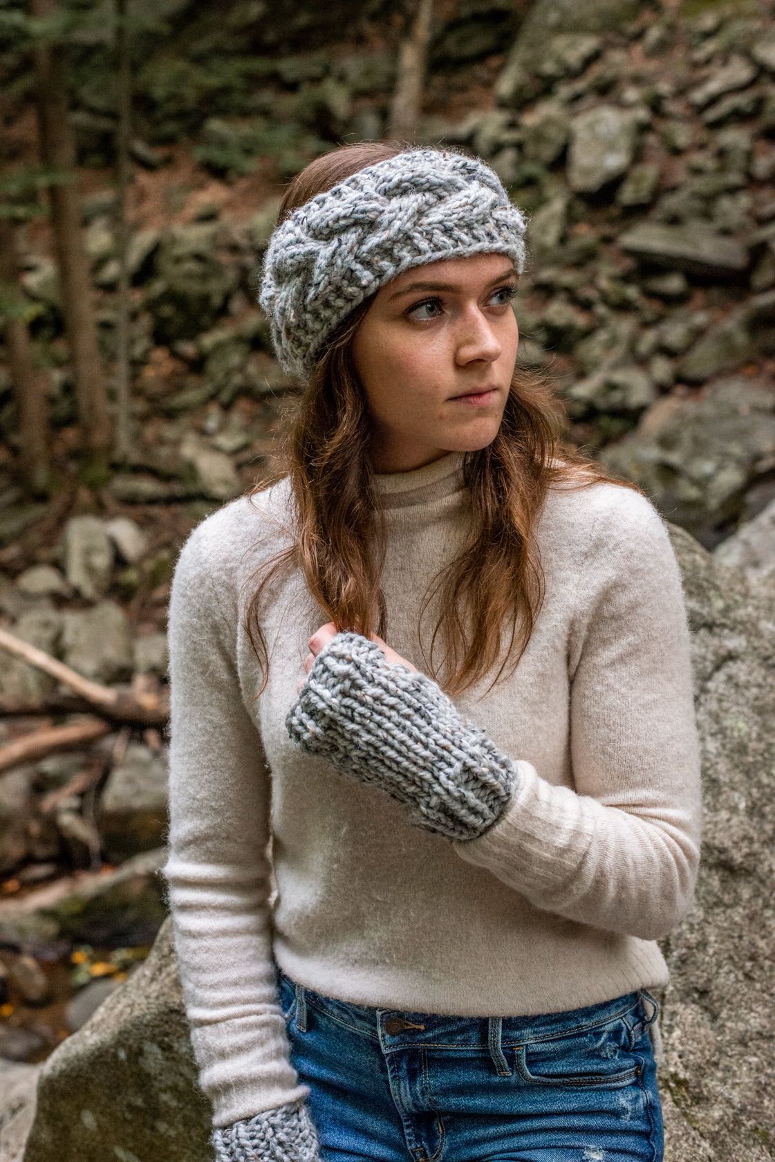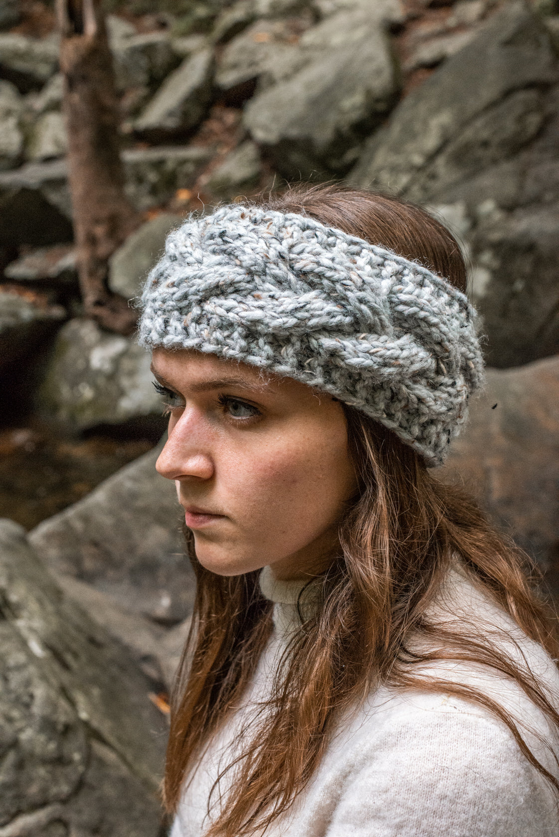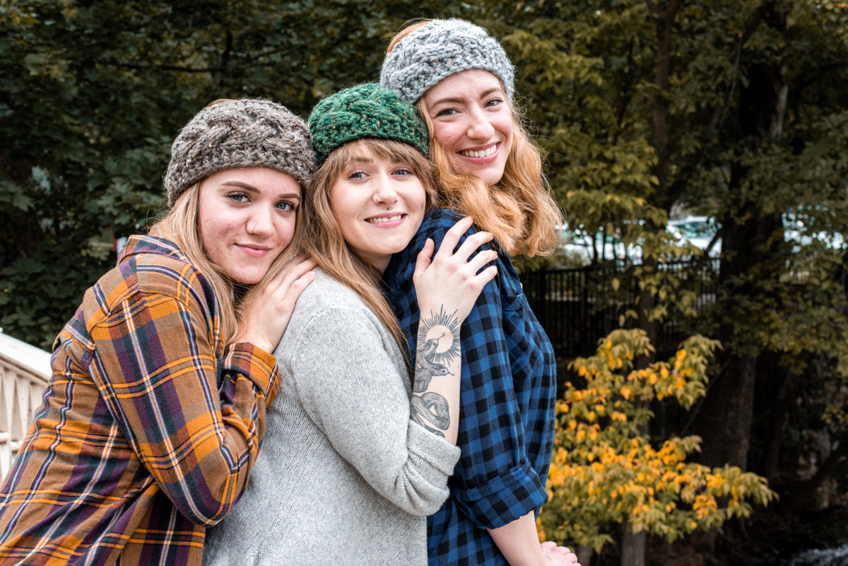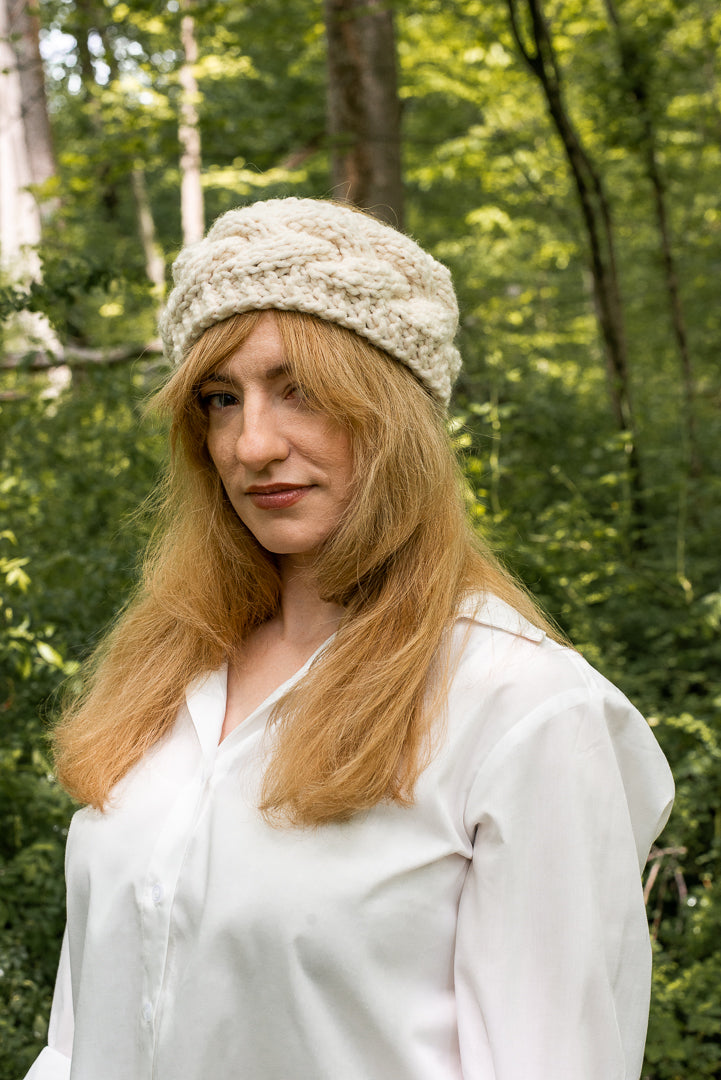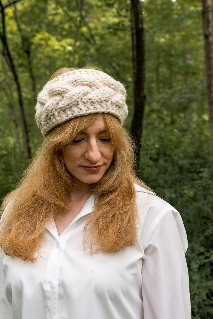 Stay cute and cozy all season with this hand knit, chunky headband. Featuring a braided textured design.