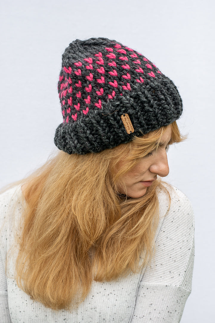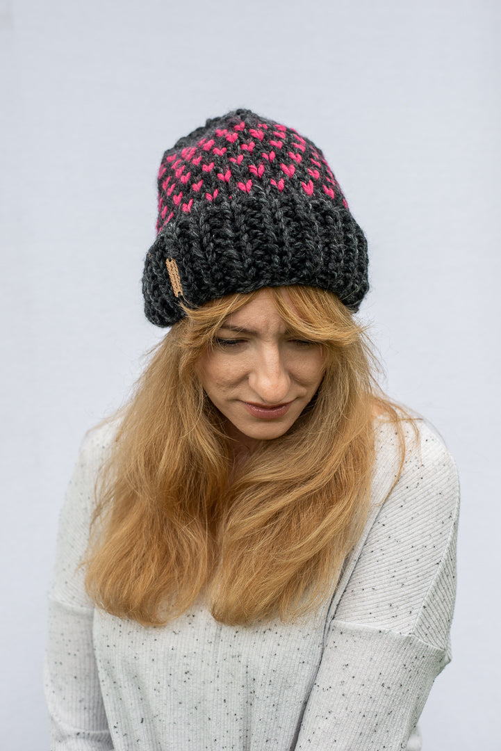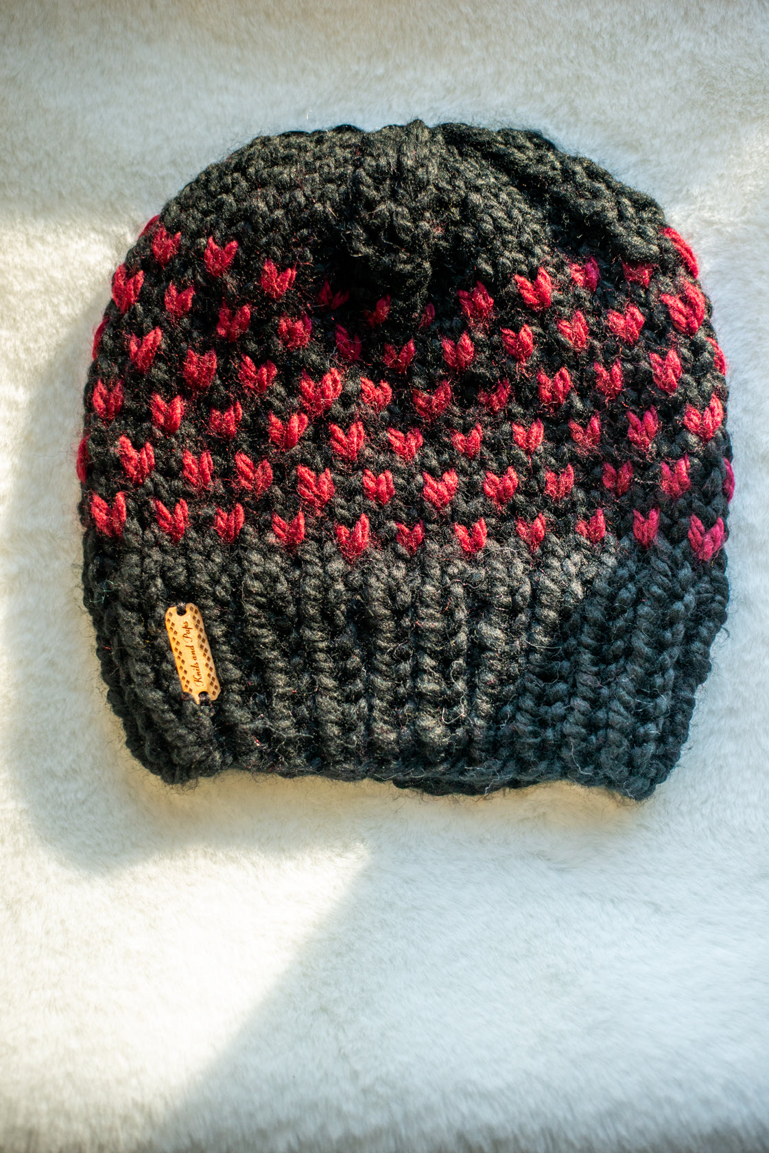 Stay cute and cozy all fall and winter with this handmade, chunky knit hat. Featuring a Heart inspired design, perfect to add some love in your life!