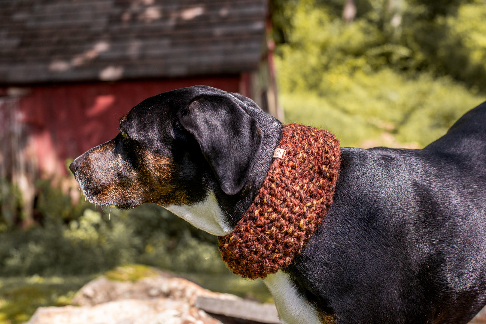 This handmade dog cowl and headband is perfect for keeping your pup cozy and stylish. Crafted with a classic solid color and featuring a moss stitch pattern, the Pebble set offers quick and comfortable protection for hikes, playtime, and more.