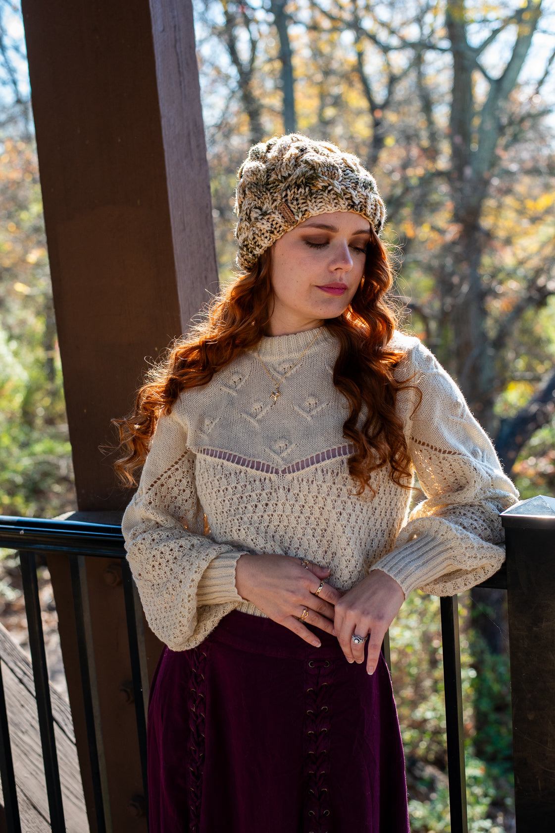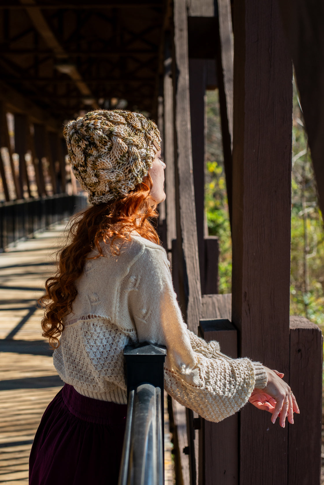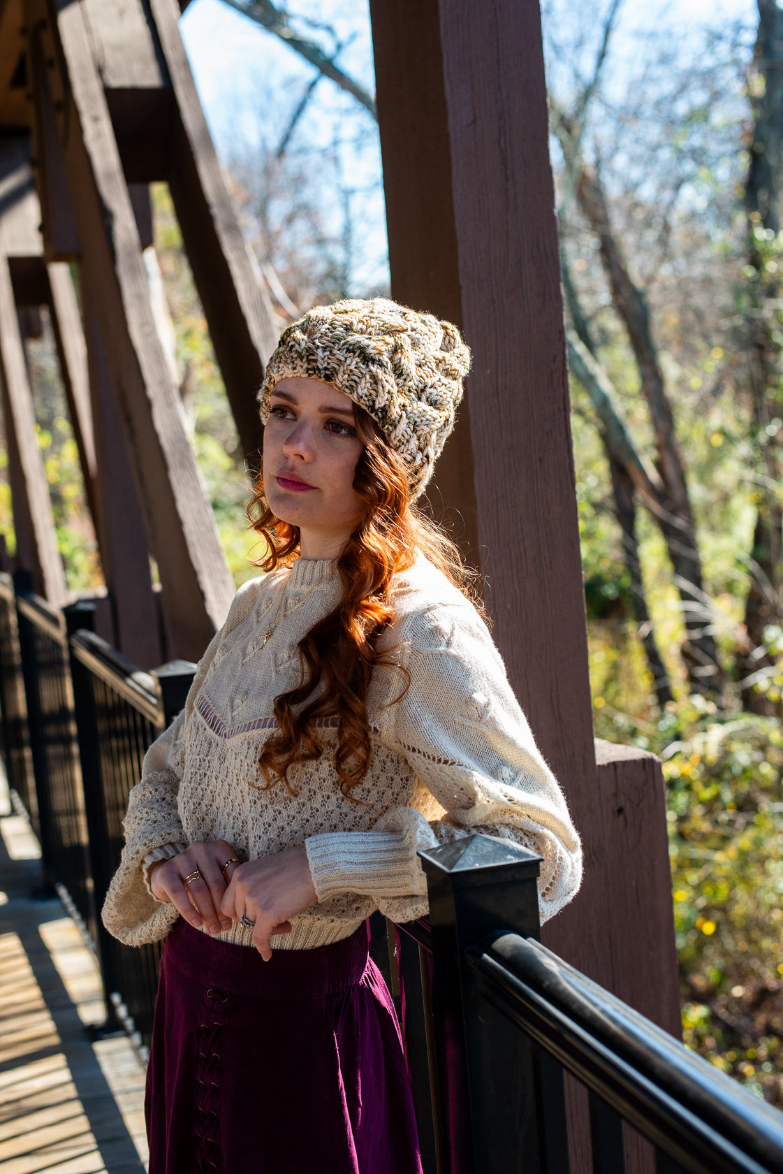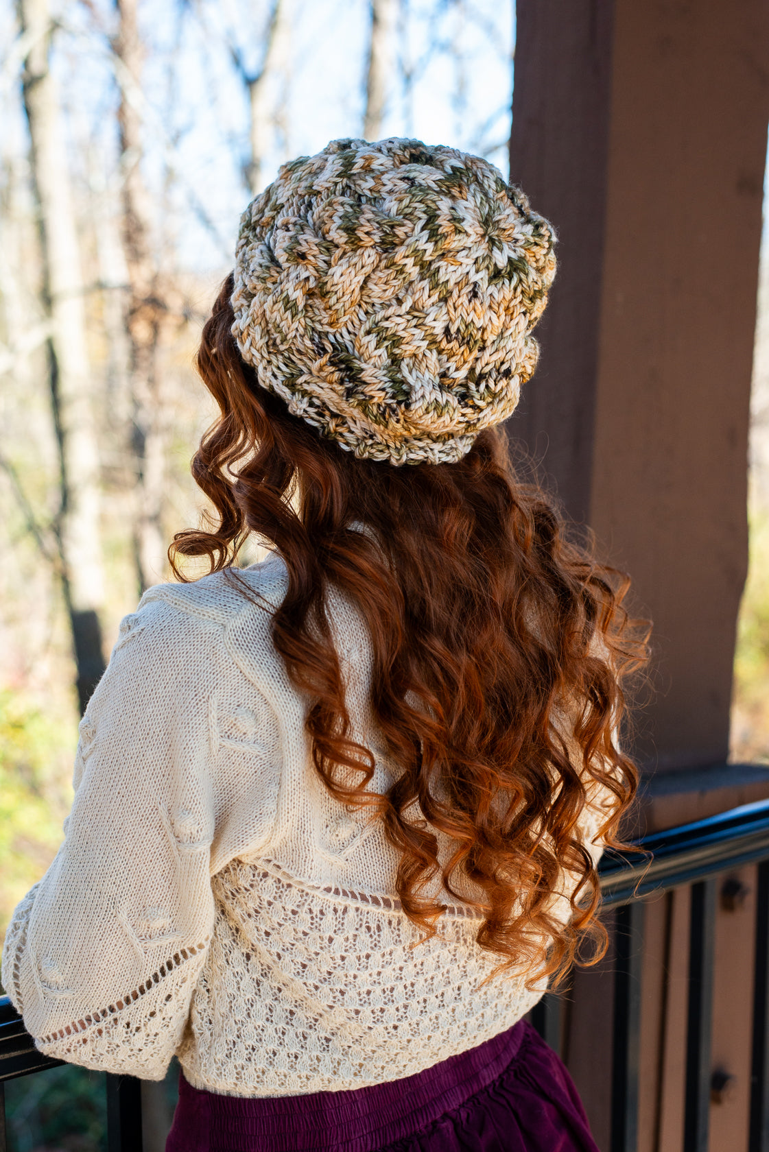 All one of a kind hats are knit with hand dyed, 100% merino wool. Because of how the wool we use is dyed by hand, each skein is unique. Combined with the braided pattern, even if we use the same colorway, each hat is totally one of a kind.