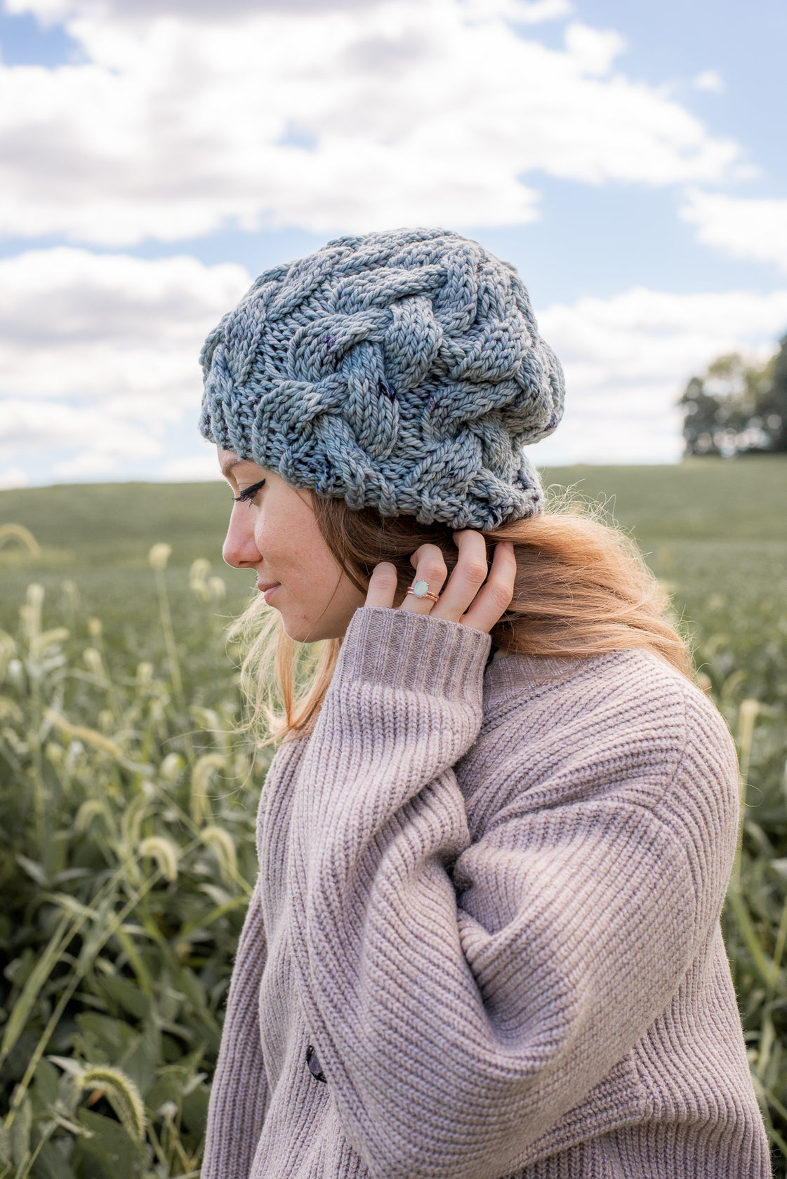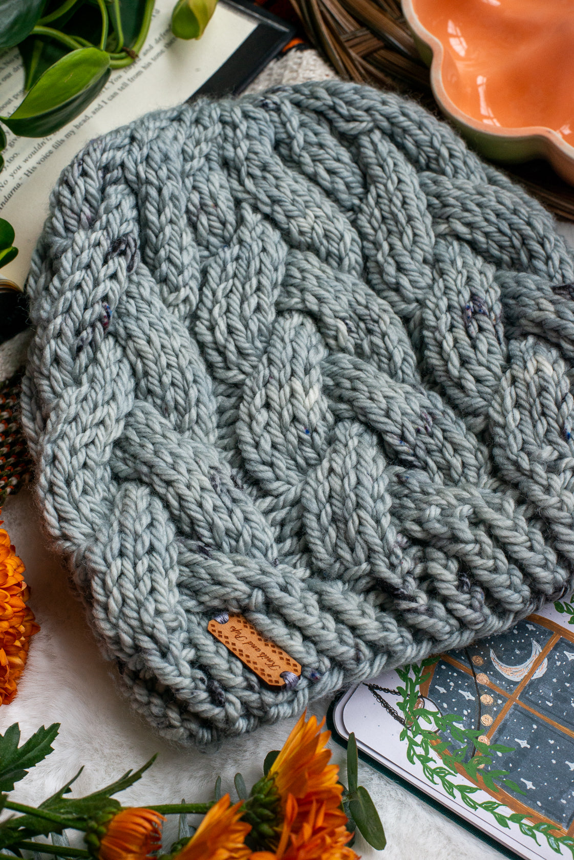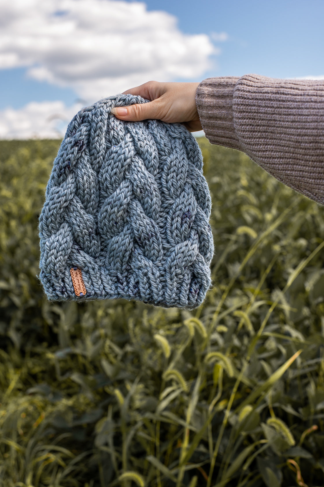 All one of a kind hats are knit with hand dyed, 100% merino wool. Because of how the wool we use is dyed by hand, each skein is unique. Combined with the braided pattern, even if we use the same colorway, each hat is totally one of a kind.