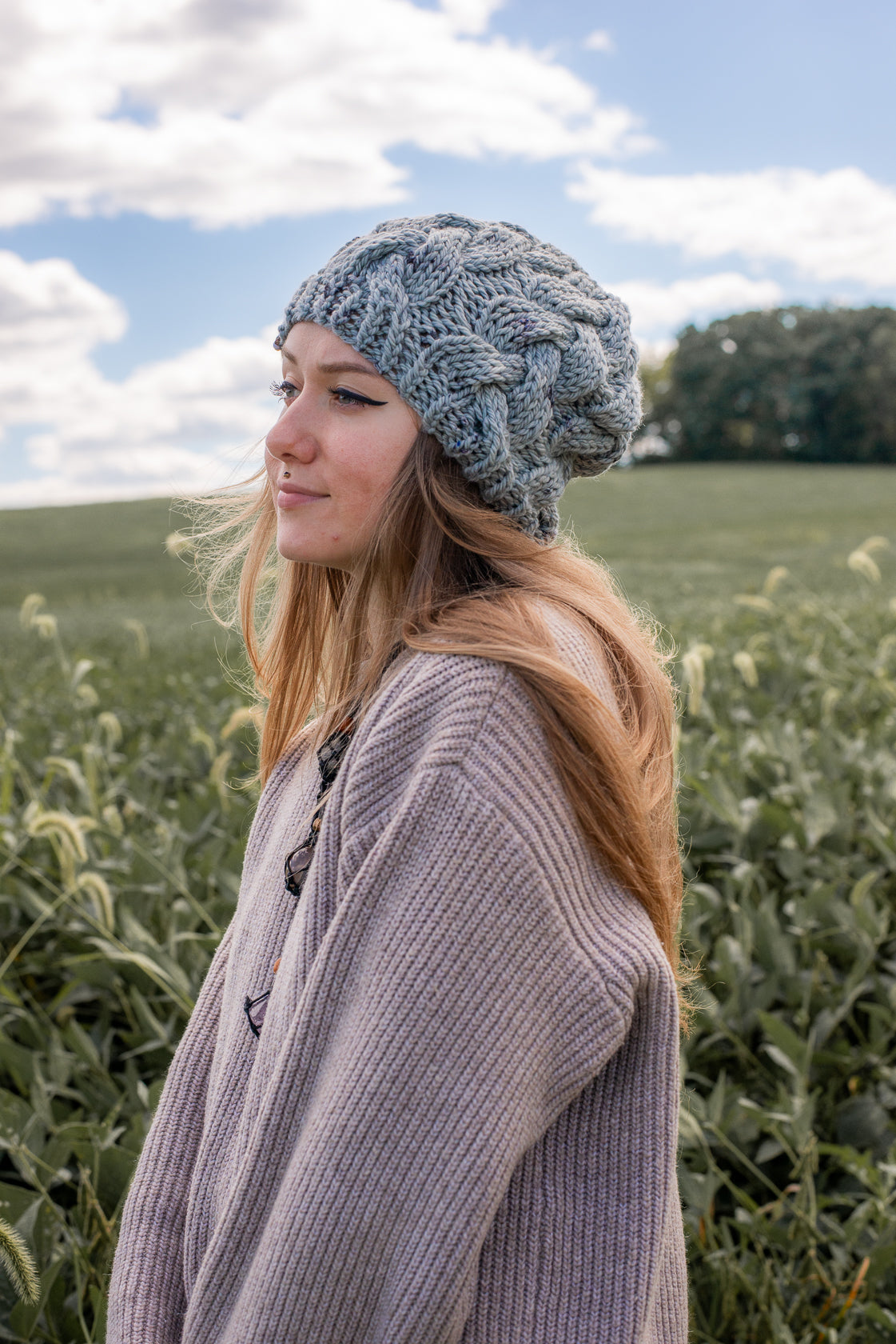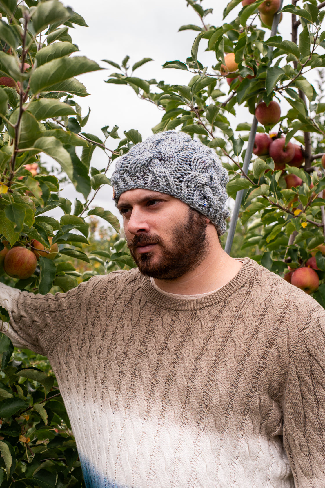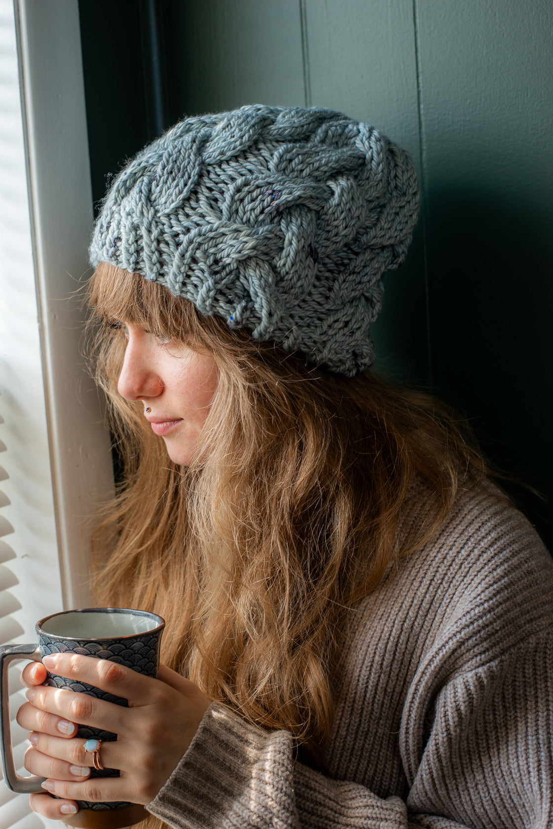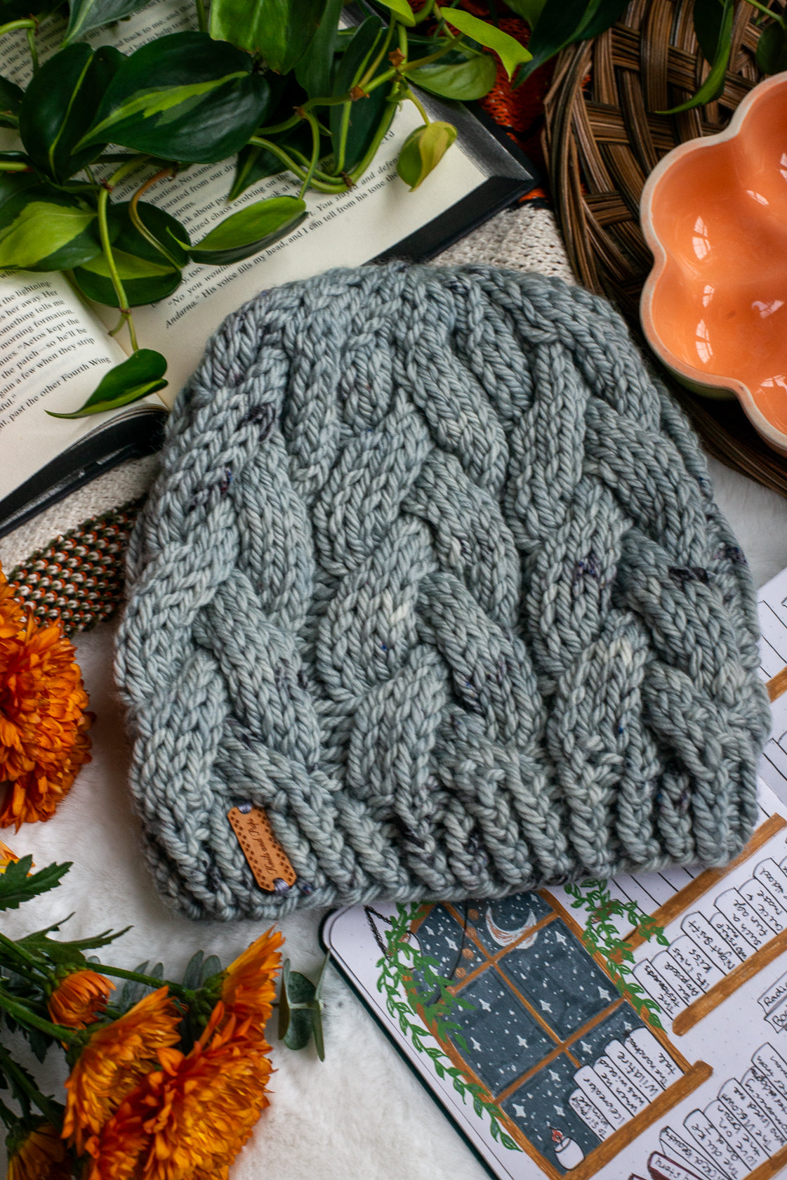 All one of a kind hats are knit with hand dyed, 100% merino wool. Because of how the wool we use is dyed by hand, each skein is unique. Combined with the braided pattern, even if we use the same colorway, each hat is totally one of a kind.