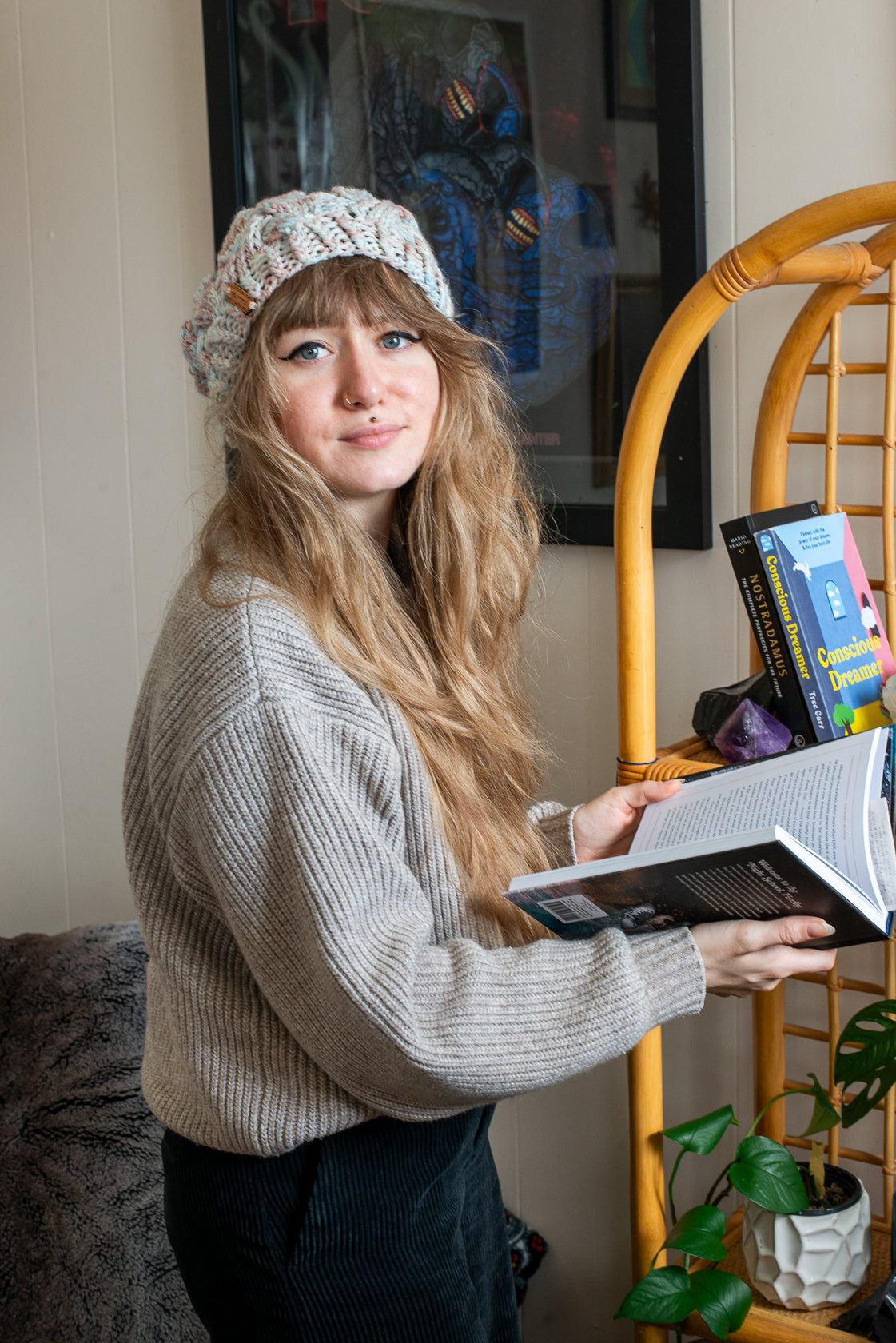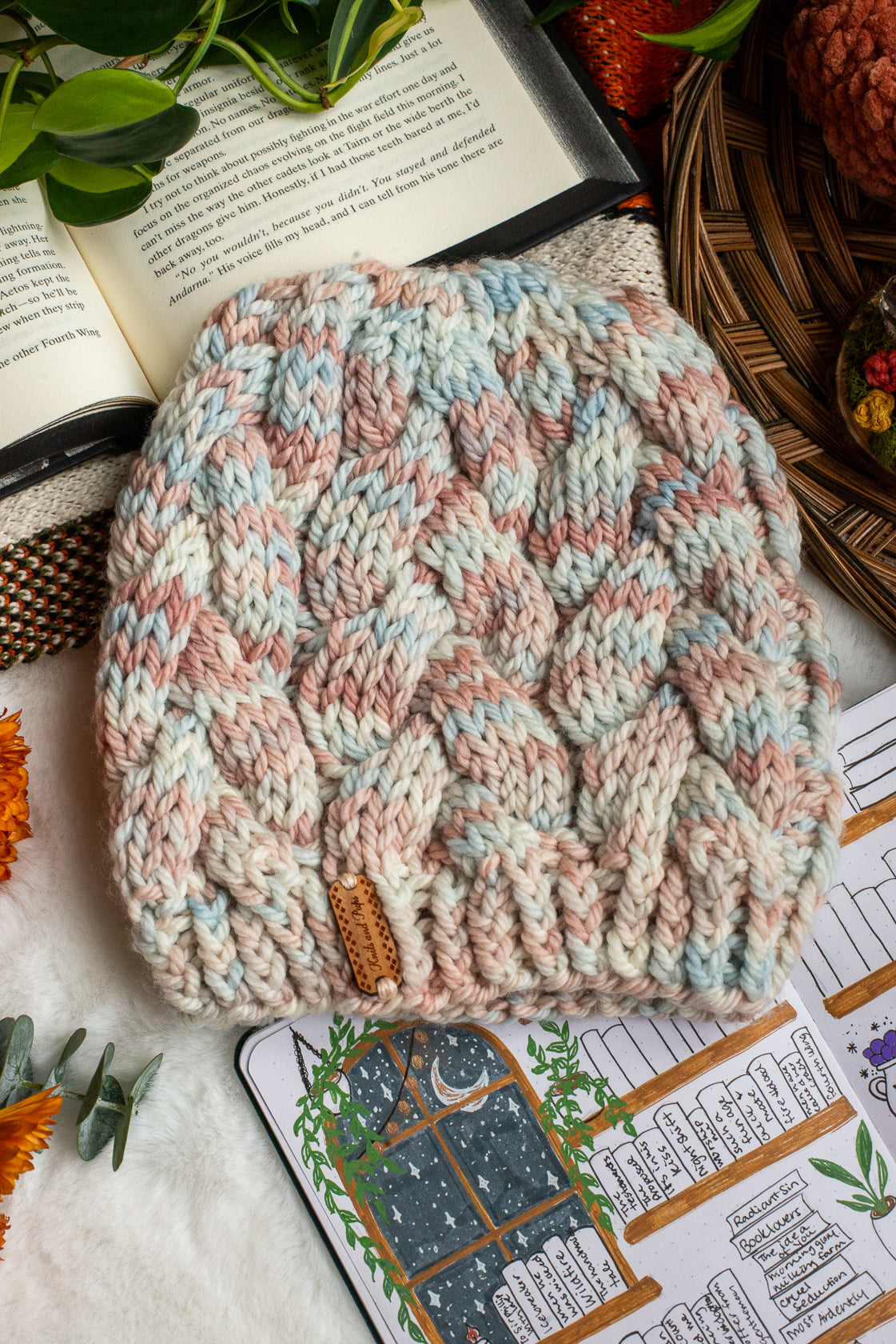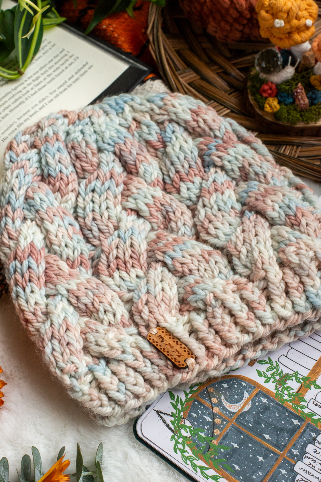 All one of a kind hats are knit with hand dyed, 100% merino wool. Because of how the wool we use is dyed by hand, each skein is unique. Combined with the braided pattern, even if we use the same colorway, each hat is totally one of a kind.