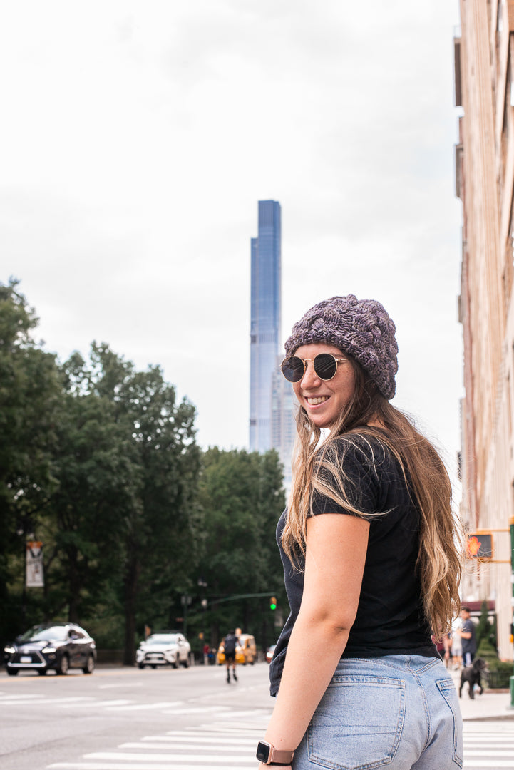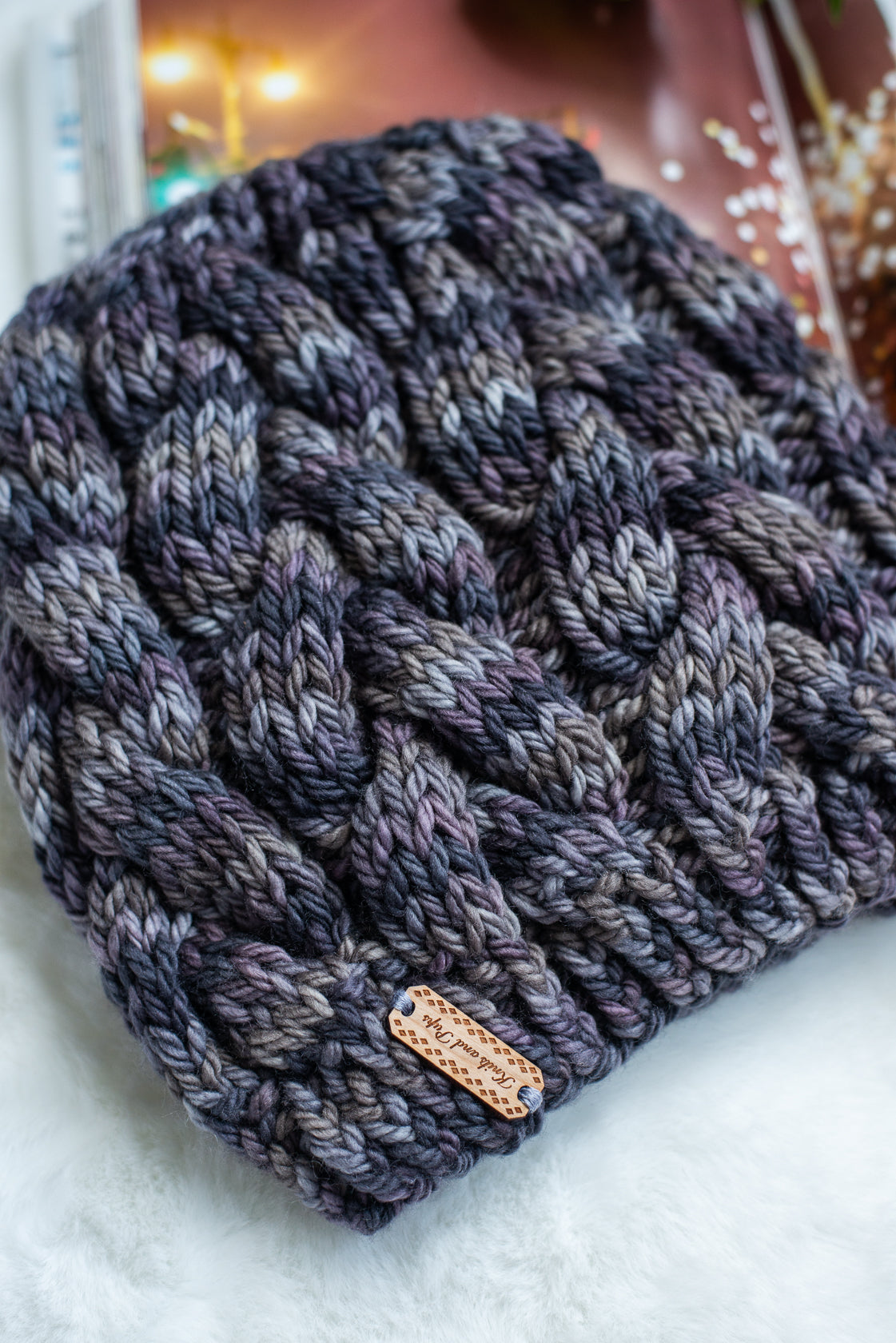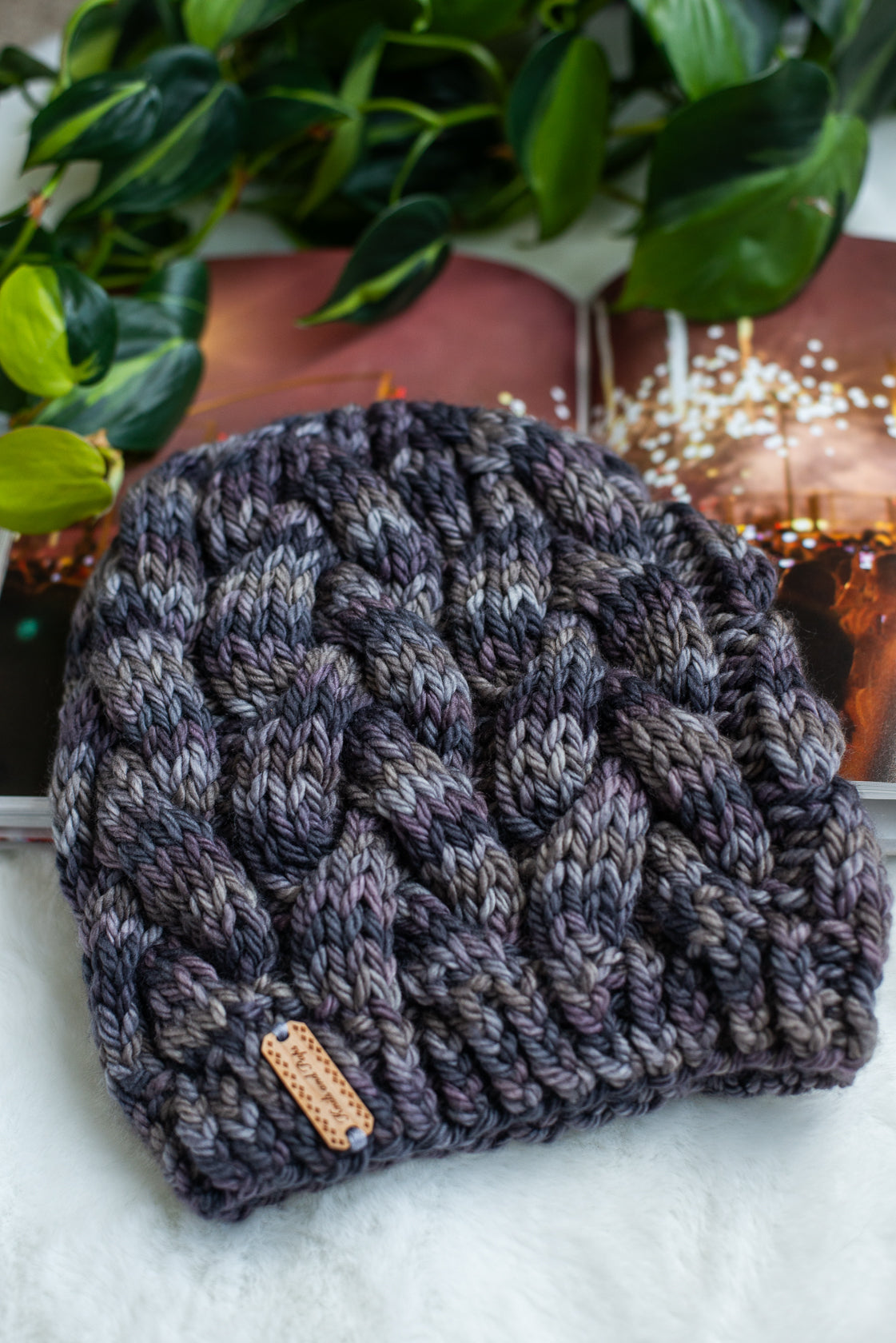All one of a kind hats are knit with hand dyed, 100% merino wool. Because of how the wool we use is dyed by hand, each skein is unique. Combined with the braided pattern, even if we use the same colorway, each hat is totally one of a kind.