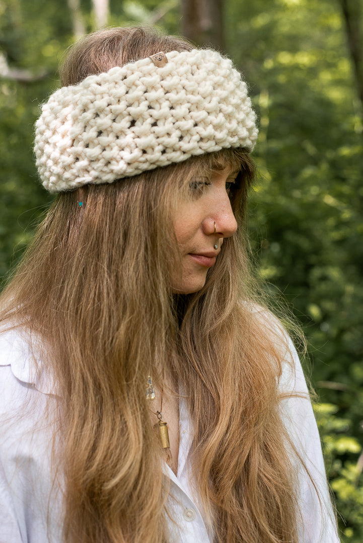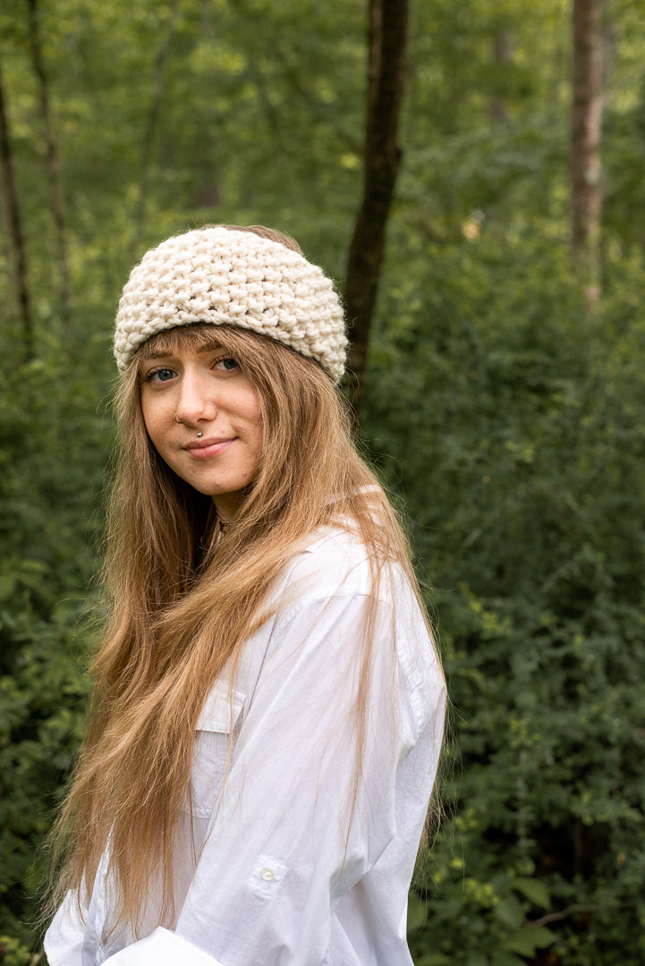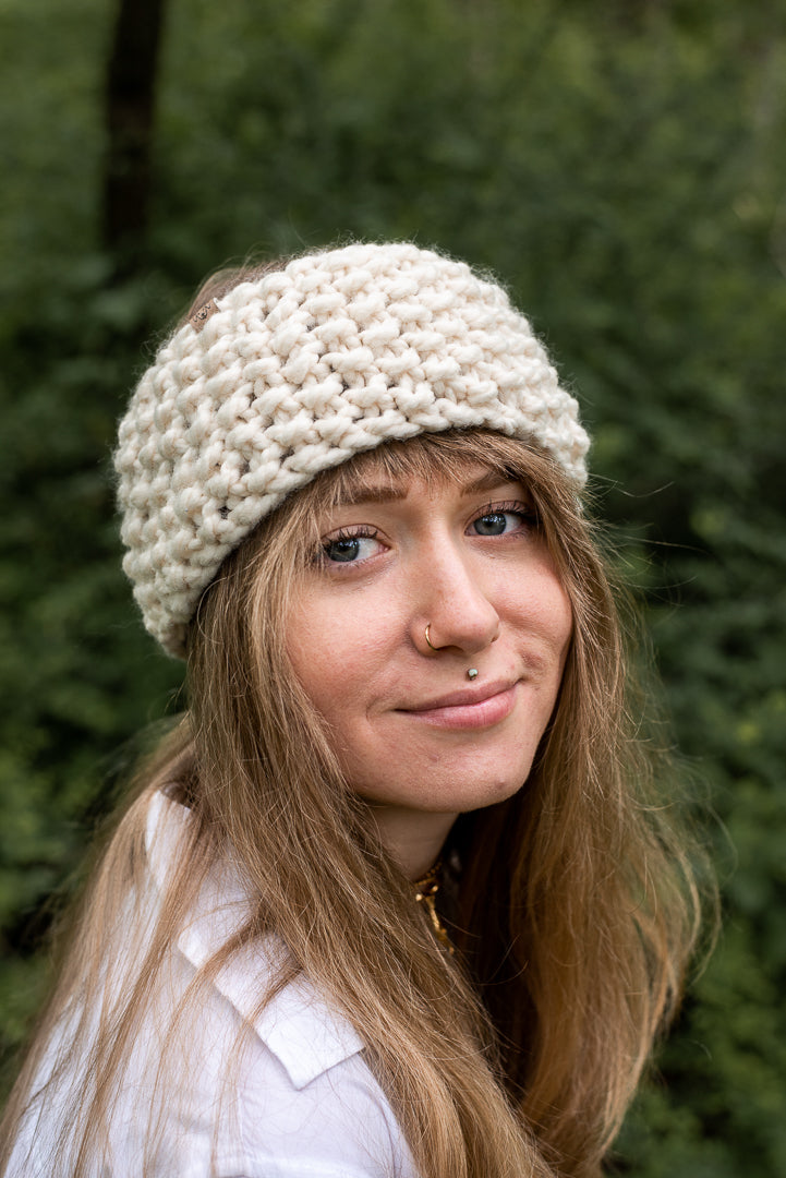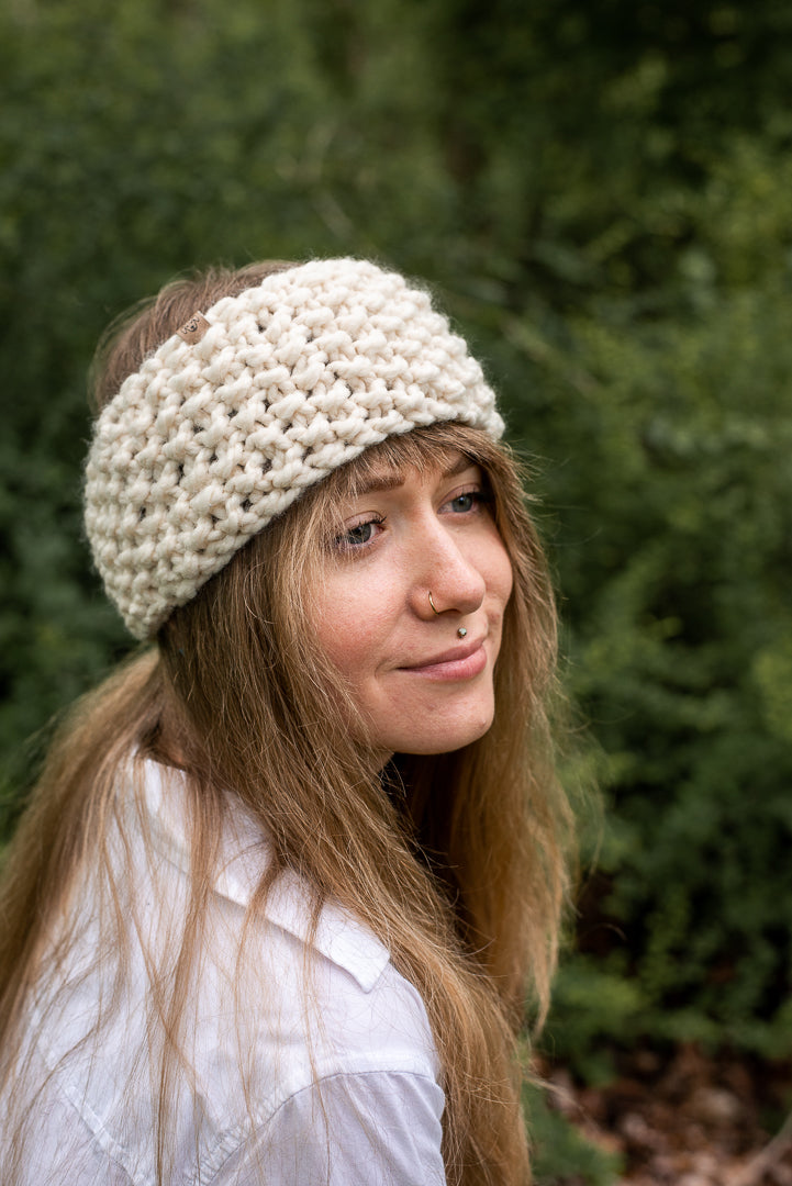 The Pebble Headband is a perfect choice for transitioning between seasons. Crafted from lightweight moss stitch, the headband is both breathable and cozy, making it perfect for autumn weather.