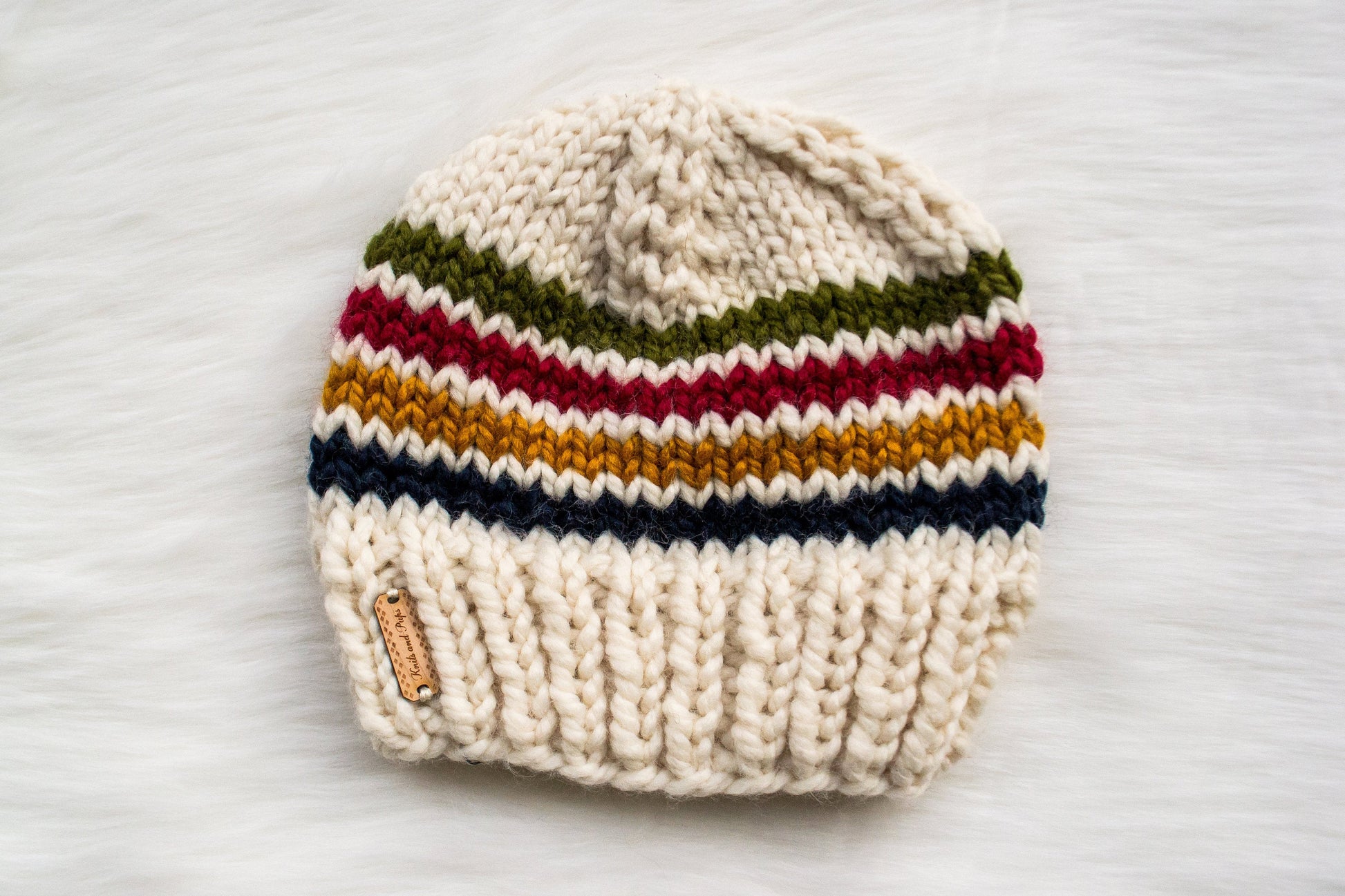 Stay cute and cozy all fall and winter with this handmade, chunky knit hat. Featuring a Pendleton inspired design, add a pom pom for extra some extra style!