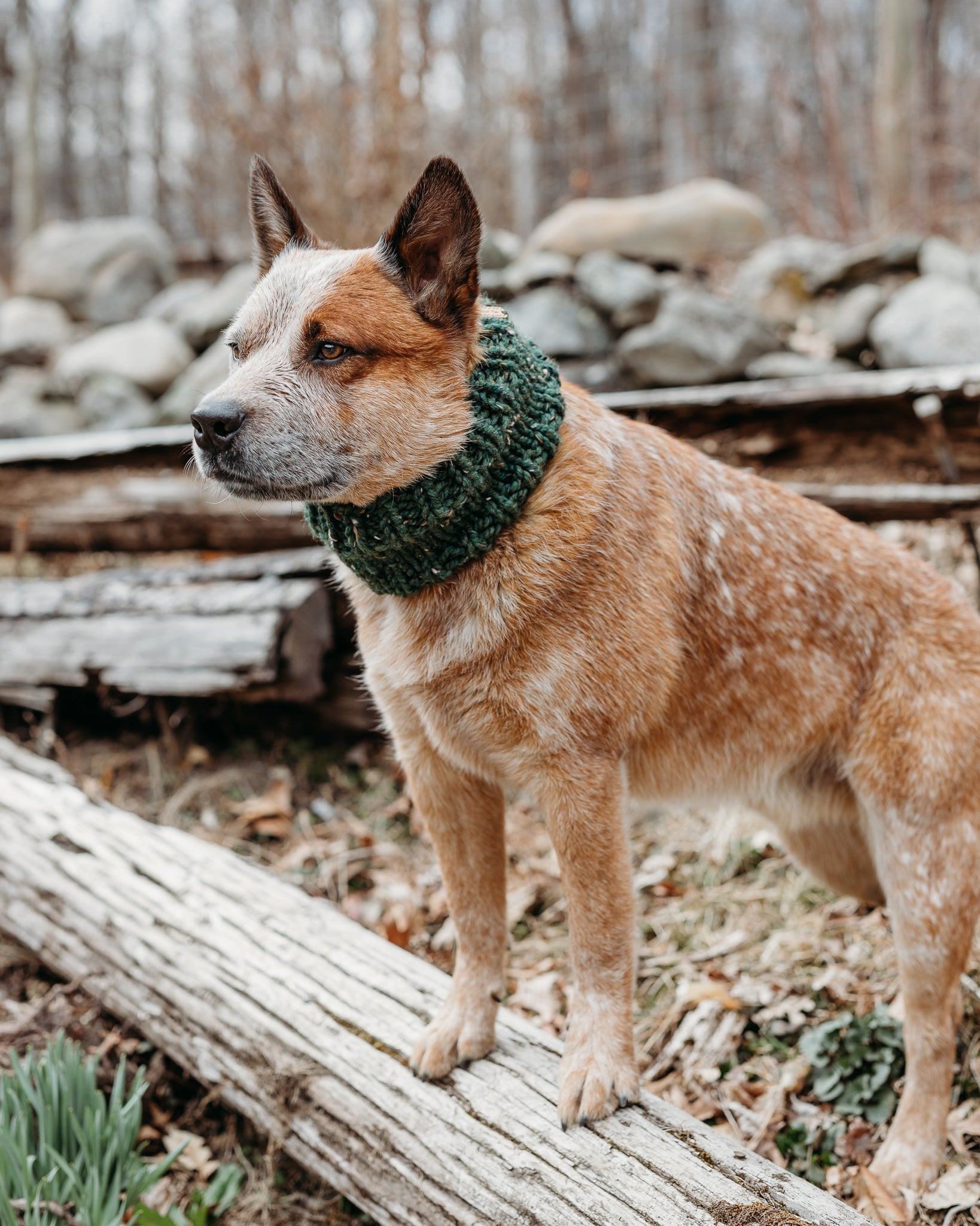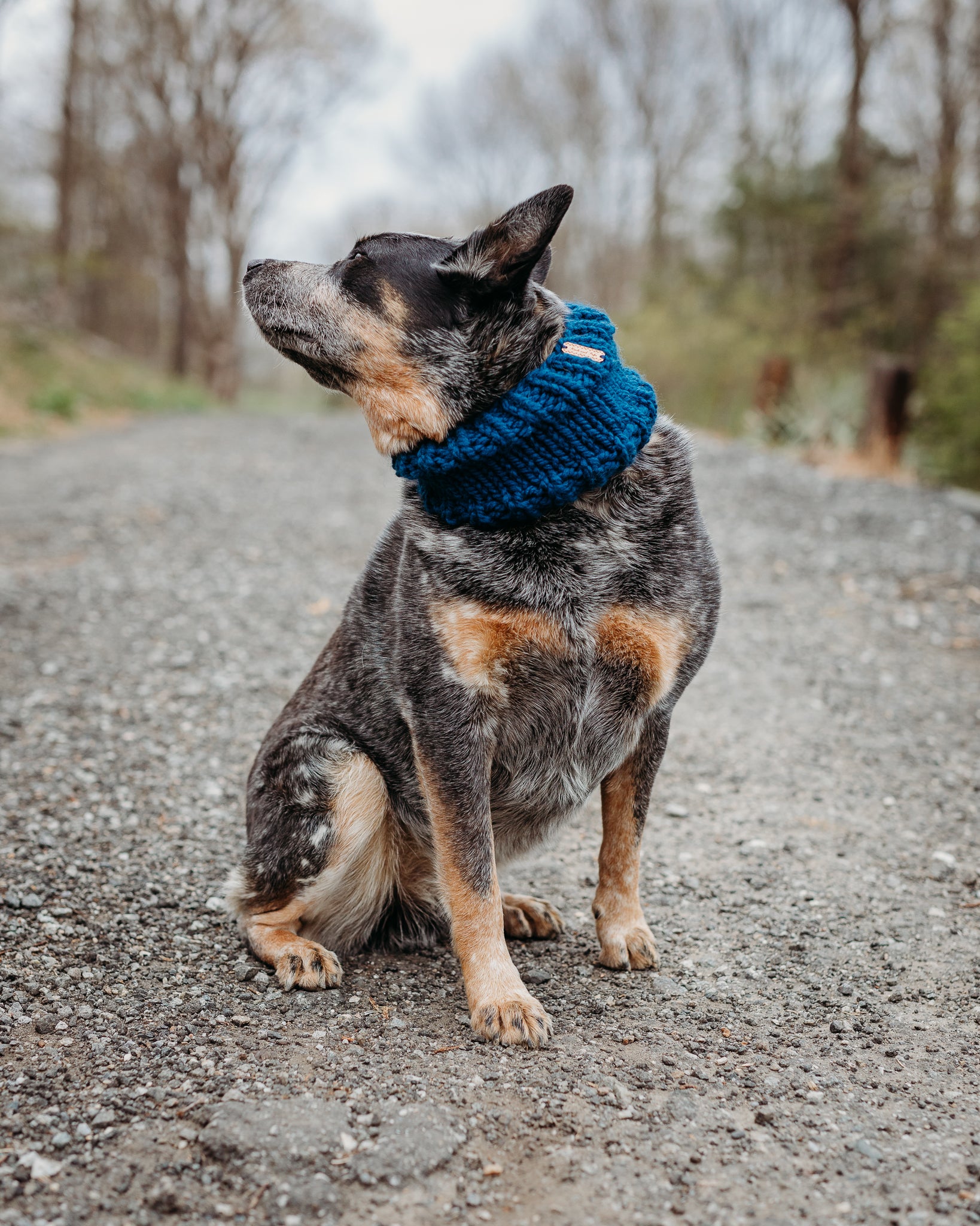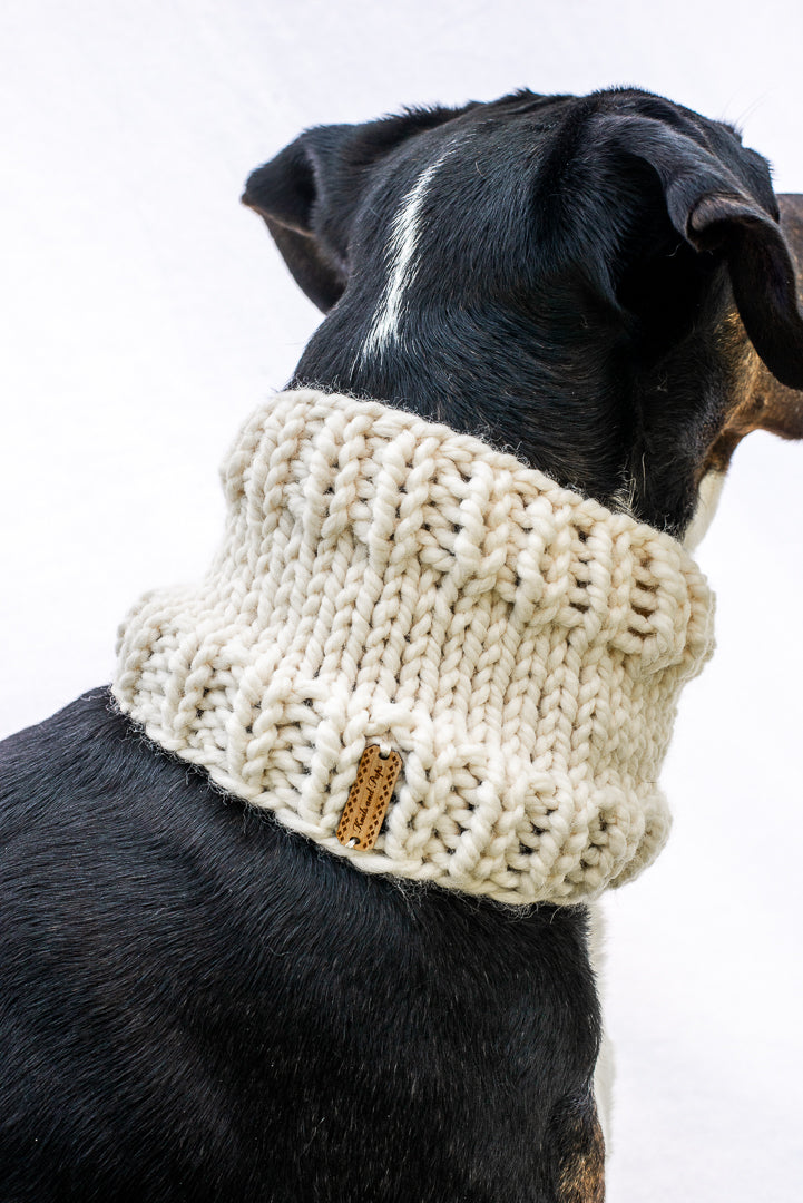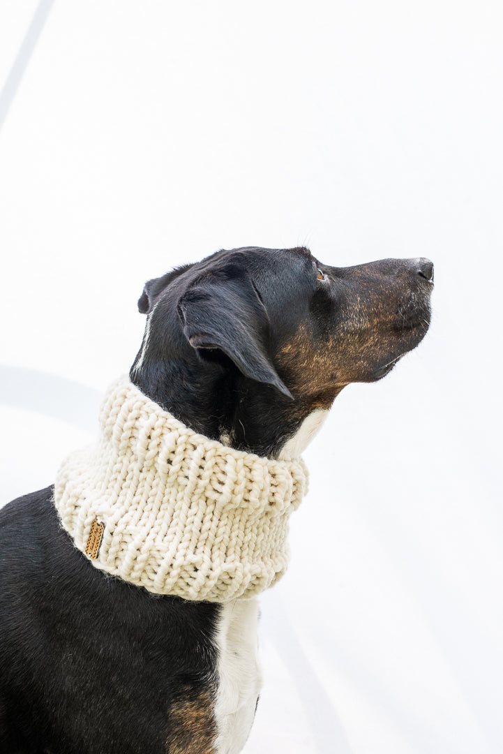 Keep your dog cozy and stylish in this handmade cowl. Featuring a classic solid color design, pop it on and head out for a hike!