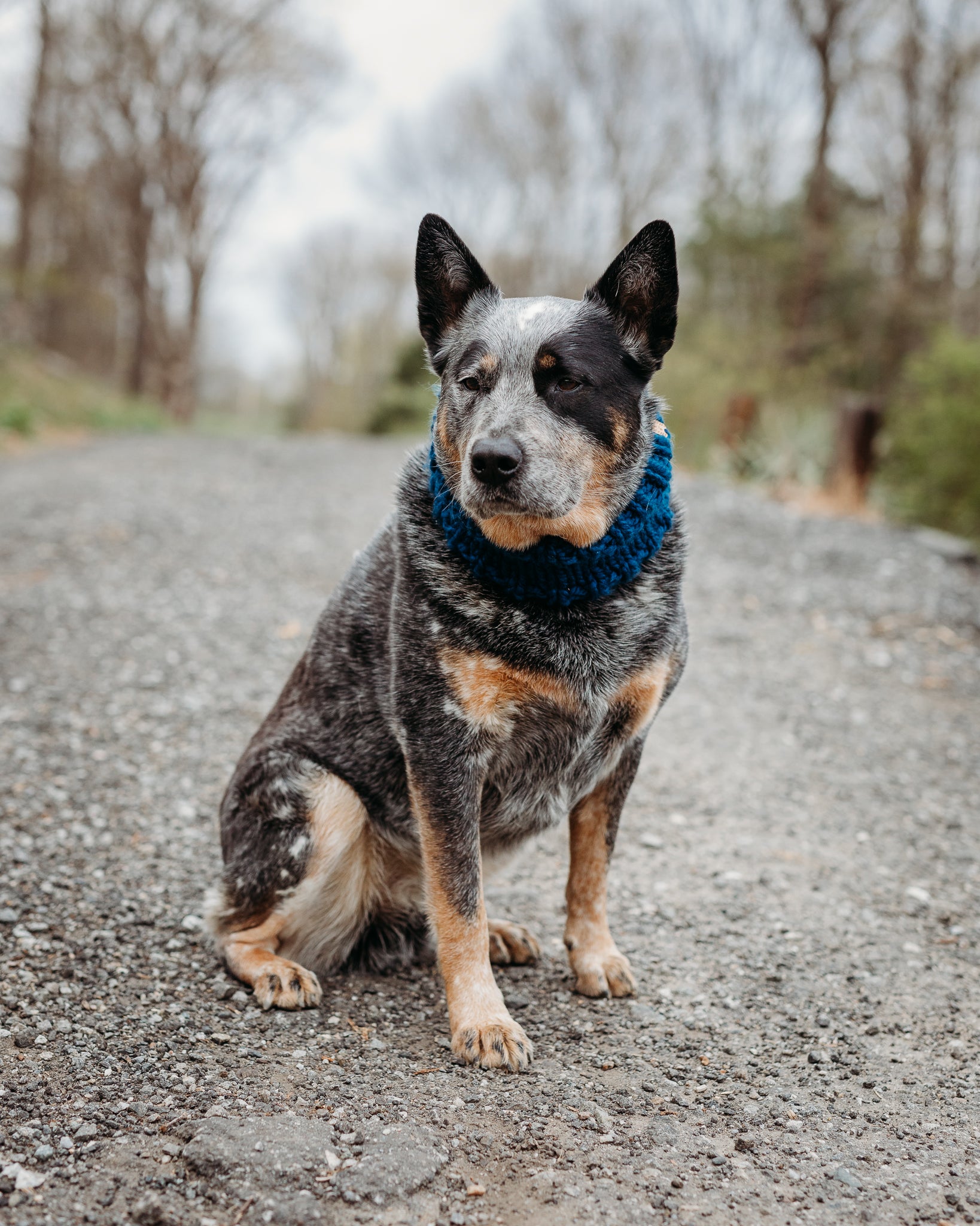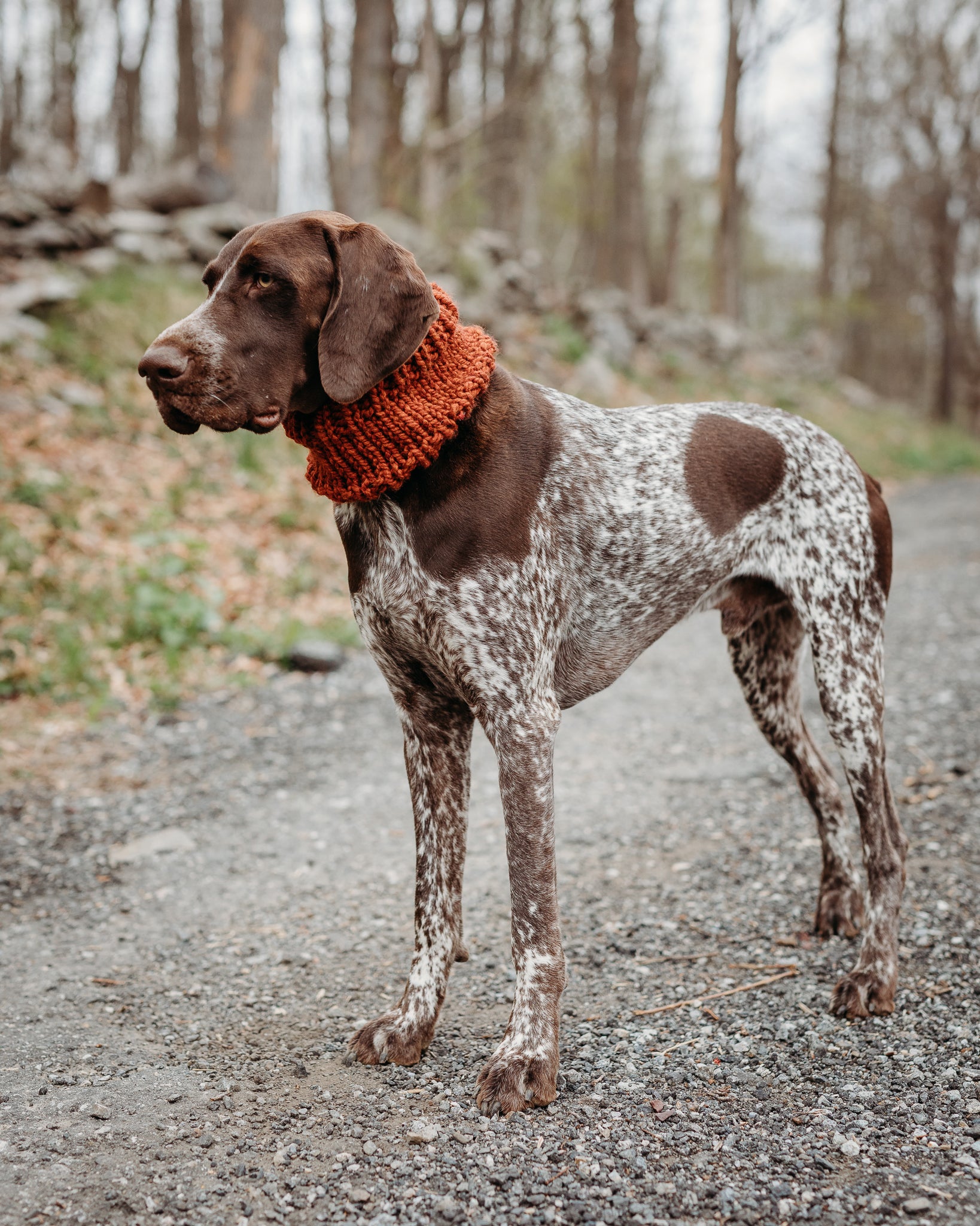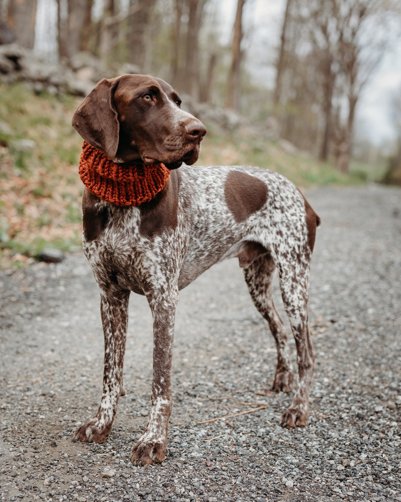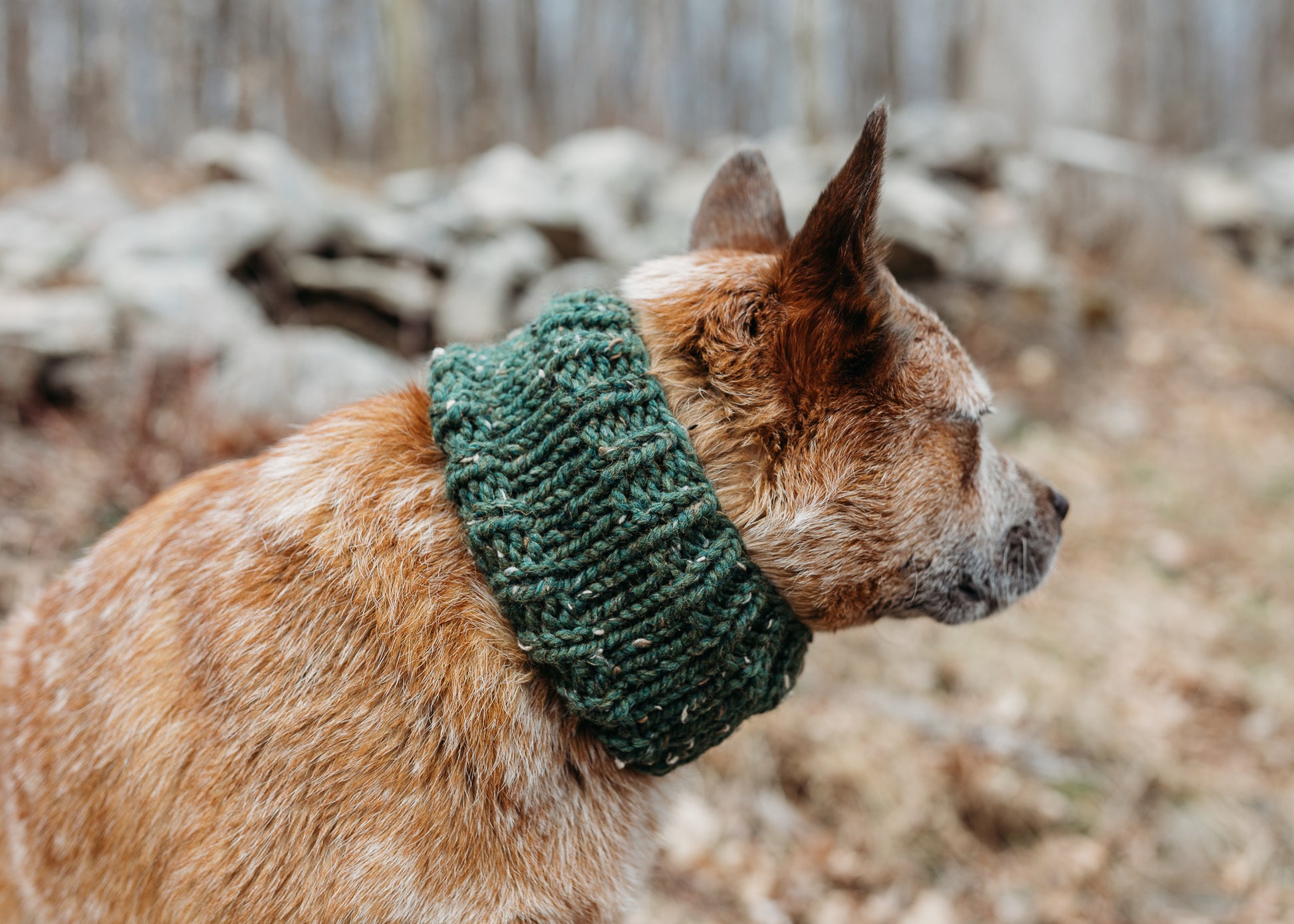 Keep your dog cozy and stylish in this handmade cowl. Featuring a classic solid color design, pop it on and head out for a hike!