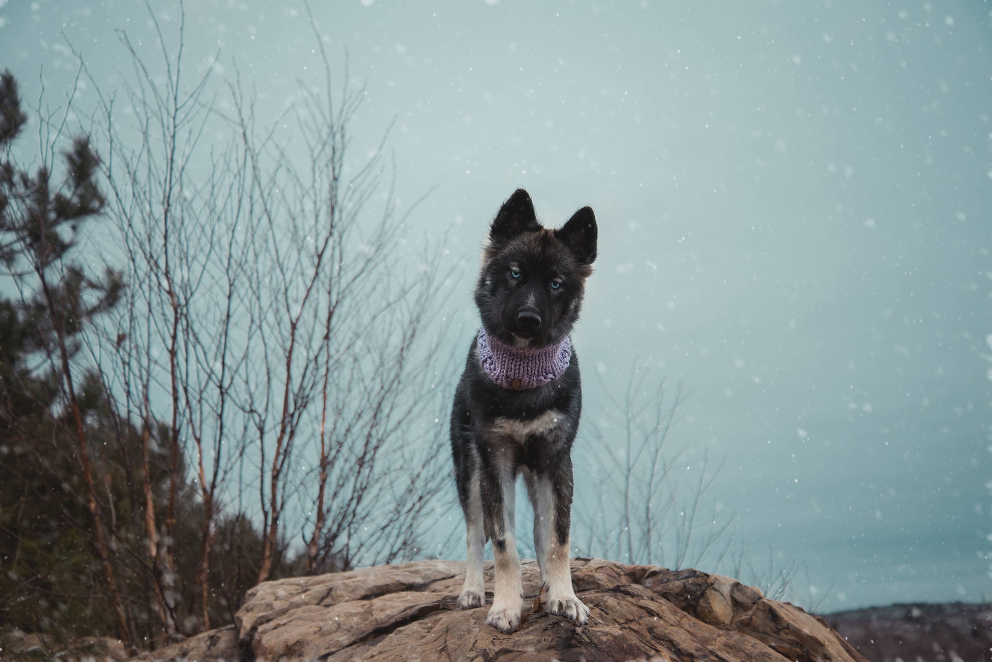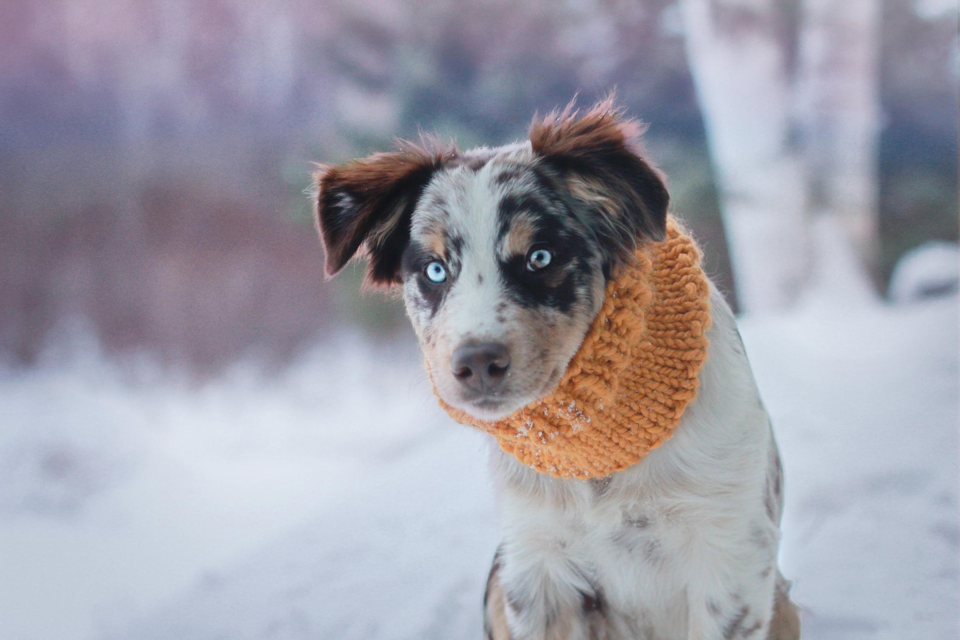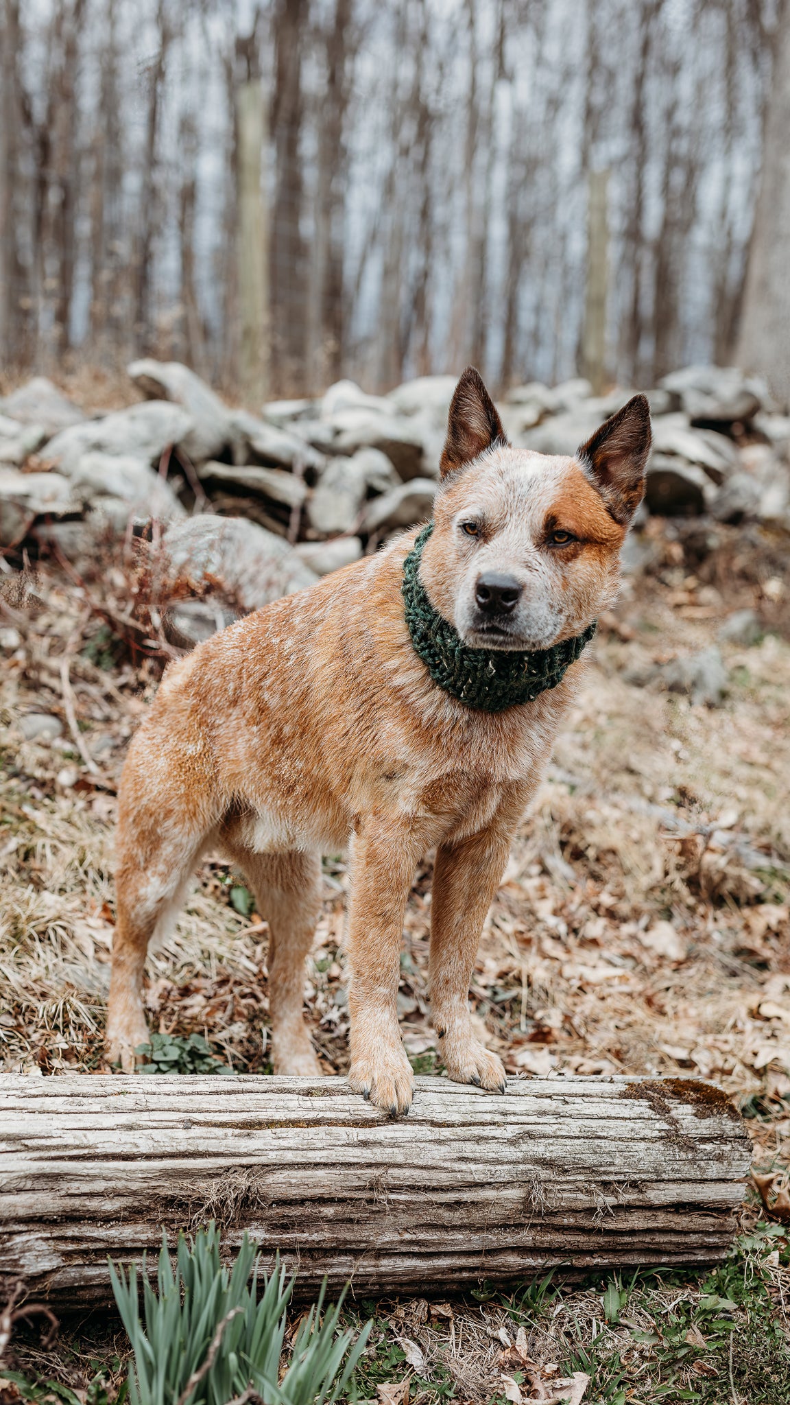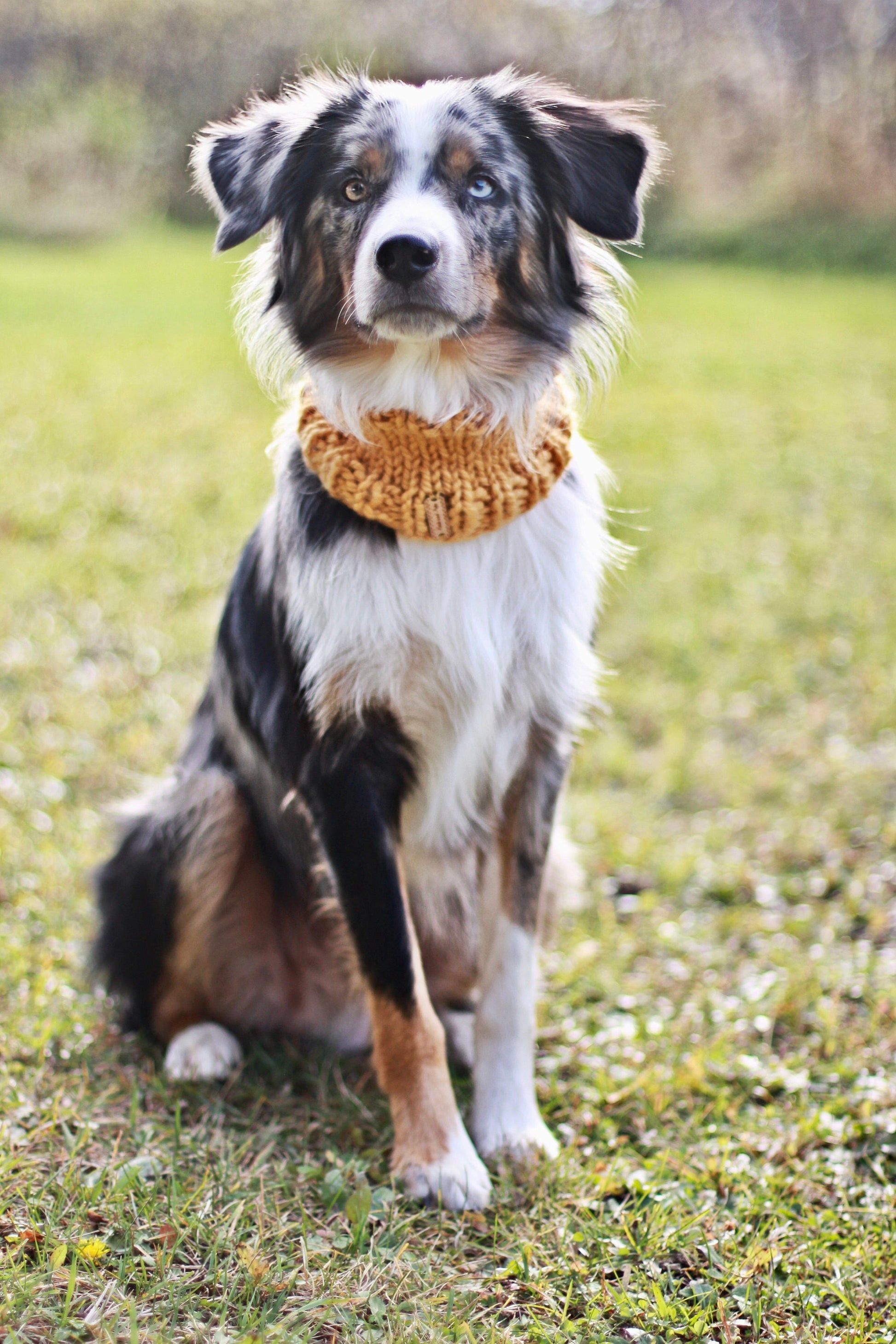 Keep your dog cozy and stylish in this handmade cowl. Featuring a classic solid color design, pop it on and head out for a hike!